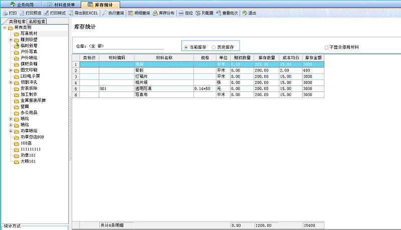 北京明皓创新广告设计制作有限公司拥有多台喷绘写真机,在北京地区举行过很多大型的展览活动,公司的业务量也比较大,由于公司目前使用的管理软件并不是专业的广告公司喷绘管理软件,因此目前公司是需要一套成熟的管理系统来对公司的相关喷绘写真业务进行管理。目前公司需要进货的材料都放在仓库中,并没有进行合理的库存管理,因为广告公司的库存管理比较特殊,不能直接使用普通的库存软件进行管理,付先生在试用软件的时候就在对我们软件中的库存功能十分感兴趣,我们的客服直接远程帮助付先生进行功能上的演示如何对广告公司的库存进行管理。