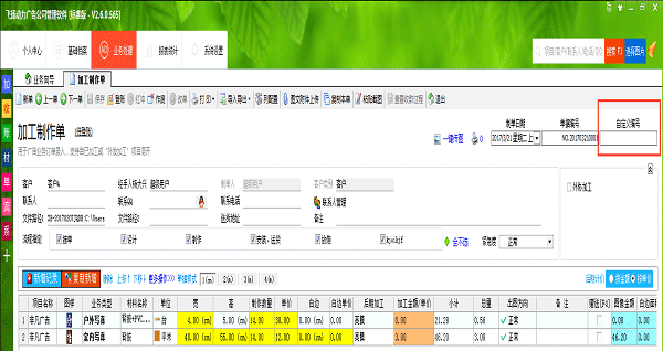 答:可以实现的,飞扬动力广告公司管理软件加工制作单的右上角,支持自己自定义编号