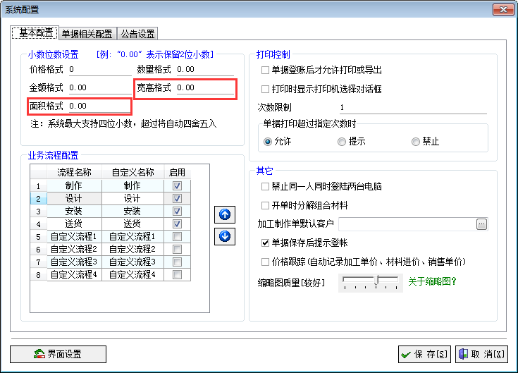 (c)因为不管宽高的尺寸单位是按米、分米、厘米或者是毫米,图像面积都是统一按照平方米进行计算。因此在系统设置中,增加面积小数位数设置,以前是尺寸与面积使用同一种小数位数,分开后可以更好解决,尺寸用厘米表示,面积用平米表示类似的显示问题。